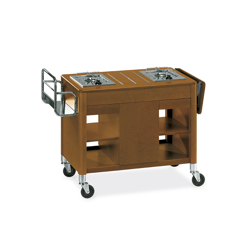 Solid träram â * bestick lådor â * LPG cylinder bostäder dörren â * Rostfri spis med lågan misslyckande säkerhet enheter överensstämmer med EG normer â * stöd topp med metall distanser â * sida krydda hylla â * förkromat stål flaska innehavaren â * Swivel hjul, ö¸ 10 cm , 2 med broms