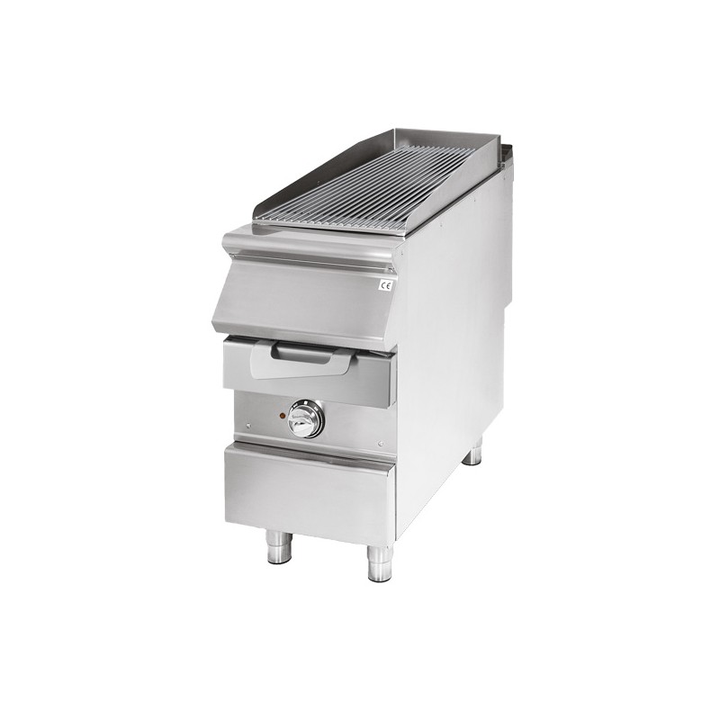 Elektrisk grill på stängda skåp. Sidopaneler, botten och baksida i rostfritt stål. Topp tillverkad i AISI 304 tjocklek 15/10. avsedd för infälld justering. Reversibel gjutjärn matlagning galler. Framåt sluttande för matlagning fett kött, med 5 mm element i direkt kontakt och dropplåda för uppsamling fett. Platta för matlagning fisk och grönsaker med cirkulära element. Sida och bakre stänkskydd. Smörj samling av en övre extraherbara frontfacket. En xtractable låda ligger under värme zonen innehåller vatten vars avdunstning garanterar grillad mat blir öm. Uppvärmning med hjälp av Incoloy 800 bepansrade värmeelement ligger under gallret. Temperaturkontroll med hjälp av termostaten. Lampan på Kontrollpanelen för att ange ugn värme aktiveringen... Speciell design rattar att undvika vatteninträngning i Kontrollpanelen. Justerbara fötter i rostfritt stål. IPX4 skydd värdering. Elektrisk strömförsörjning 400 VAC 50 ÷ 60 Hz 3N-6 kW.