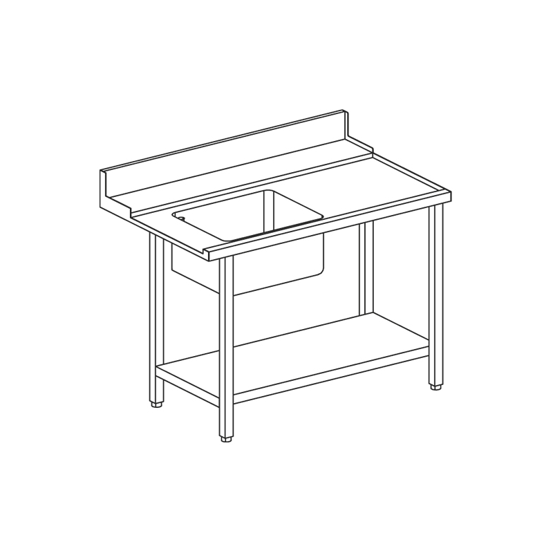 • 1800 x 770 x 870 mm - Höger inmatningbänk med ho till vänster för huvdiskmaskin, w 1800 mm