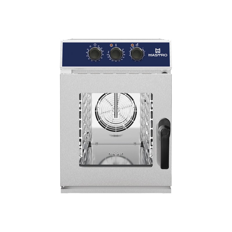 Elektrisk kombiugn med mekanisk styrning och direkt ånginjektion. Ugnen erbjuder enkel manuell tillagning med flera lägen: