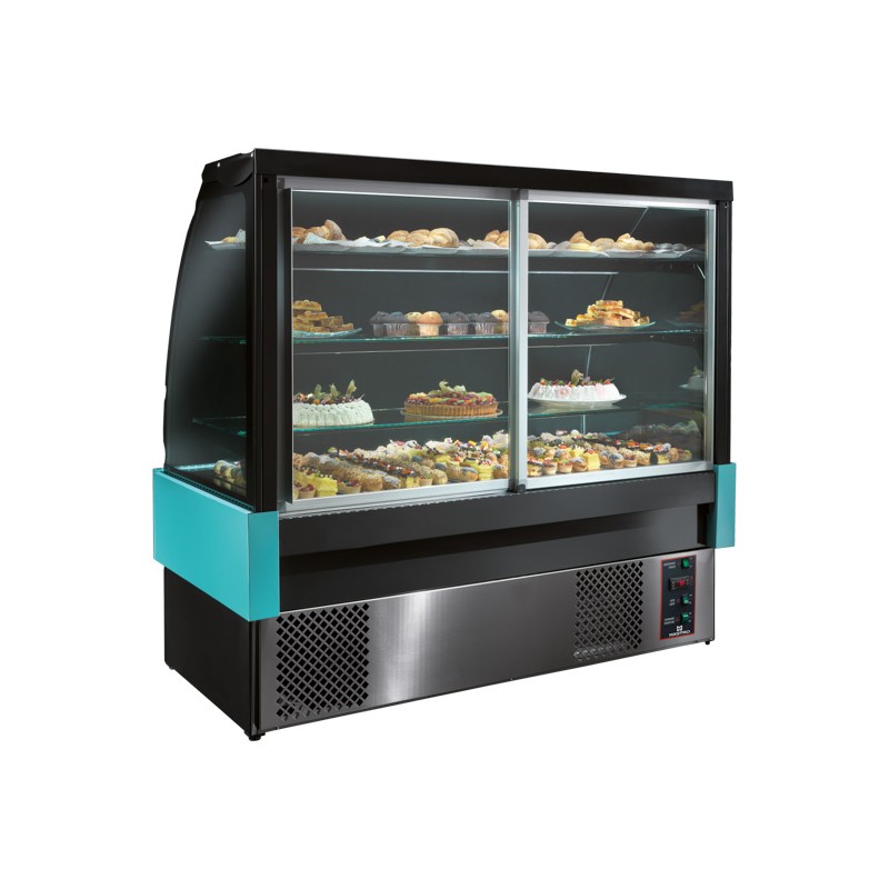 Kylda showcase. Temperatur intervall 0Â ° C / + 2° c. Med sin stora anläggning är perfekt inte bara för exponering och utveckling av bakverk men också för exponering av färdigförpackade färdigmat, smörgåsar, kalla tallrikar. En enkel och elegant design, denna modell är ett utmärkt val att möta de olika behoven hos kunder, tack vare sin flexibilitet i användning och elasticitetsmodul. Panoramautsikt böjda glas och 3 hyllor, monteras med standard belysning utöver ovanstående, de ger överlägsen synlighet av produkter på displayen. N ° 3 höjd justerbara glashyllor med neon belysning. Övre belysning. Elektronisk kontrollpanel. Automatisk eliminering av kondensat vatten. Trälåda packning.