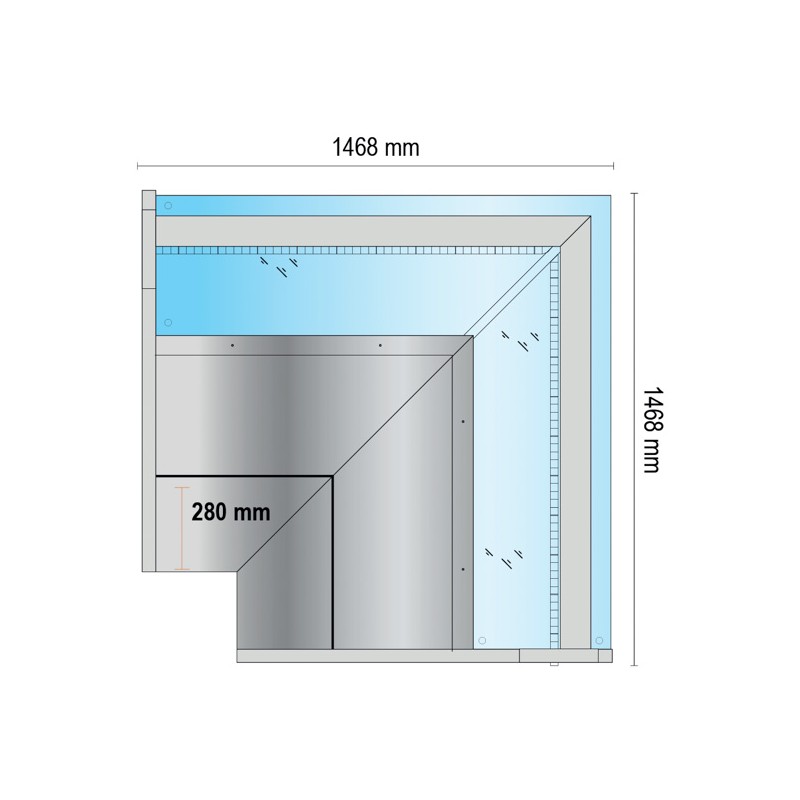 Kylmonter i hörnutförande, idealisk för yteffektiva lösningar i butiker med begränsat utrymme. Utrustad med vertikal glasfront och ventilerat kylsystem för jämn temperaturfördelning. Energieffektiv konstruktion med låg miljöpåverkan.