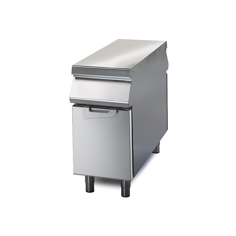 Neutralt element med låda enhet med dörr. Sidor, botten och baksida i rostfritt stål. Topp i rostfritt stål AISI 304 tjocklek 20/10. Bestämmelse för unionen att huvudet. Apparaten utrustad med fyra justerbara fötter för placering på golvet.