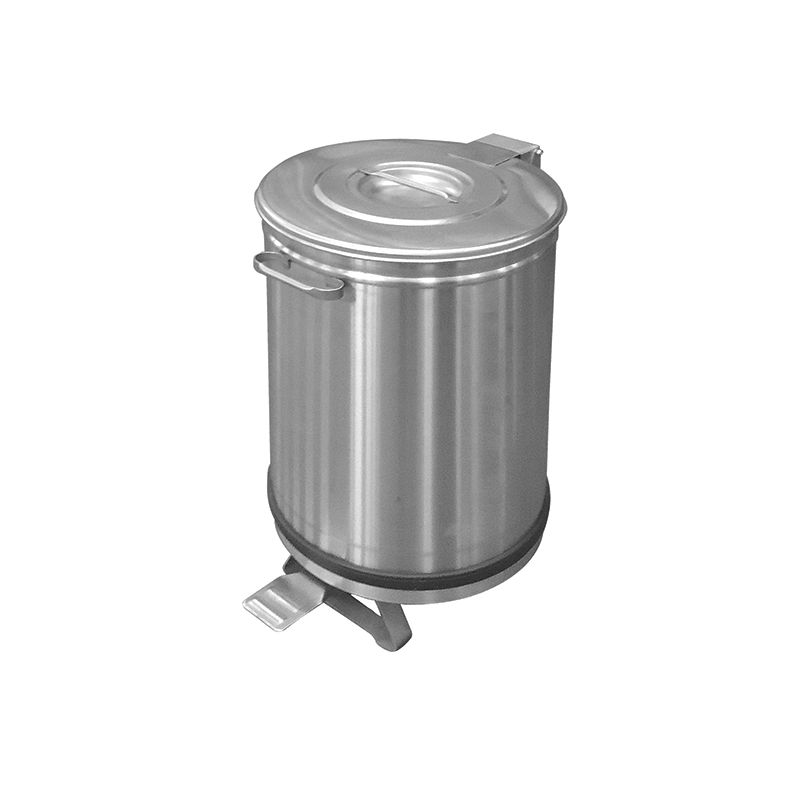 Tillverkad helt i rostfritt stål. â * botten snäva gemensamma för vätskor. â * länkhjul med rostfritt stål stöd â * rostfritt stål handtag för transport â * gummi buffertar på lägre delen â * fot-öppning locket. â * avtagbart lock om du vill tillåta för att placera papperskorgen under a förberedelse bord.