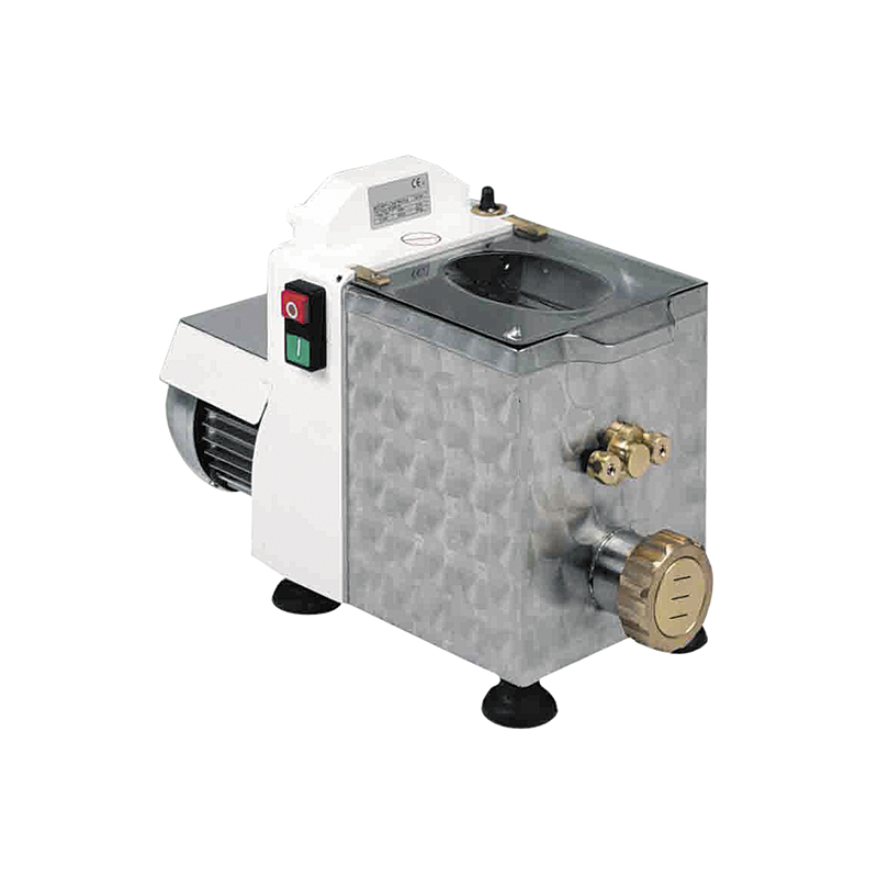 Pastamaskin även för äggpasta i olika former. Struktur fodrad med scratchproof paint-rostfritt stål handfat och knådare-Mässing/brons legering blad-micro switch på handfatet lock-versioner CBF0002 och CBF0003 med standard kylning-standard elektroniska pasta cutter område på utvisning CBF0002 och CBF0003 tillval: stå (standard på CBF0003). Tillbehör: Mässing/brons legering munstycken i olika former.