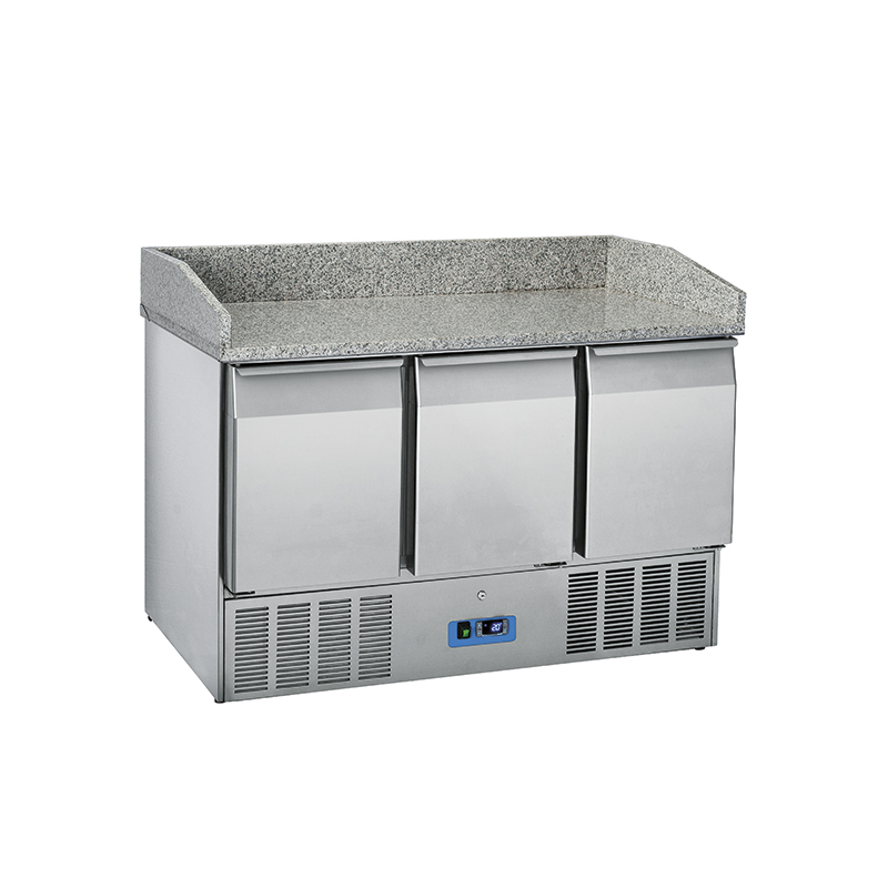 1/1 GN PIZZA COUNTER kyld SALADETTE /(cm 53x32.5)-PIANO och granit BACKSPLASH-# 3 kyld dörrar-+ 4 + 10 º / º C temperatur -