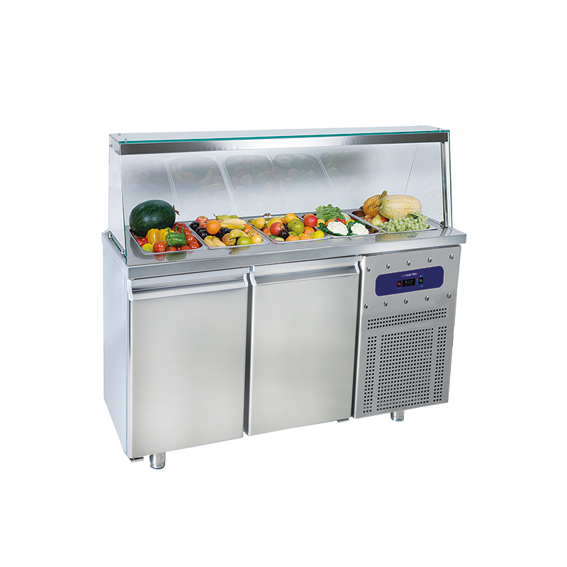 Saladette med 2 dörrar gn 1/1 och glas struktur, 4x gn 1/1 h 150 mm, -2 ° / + 8 ° c