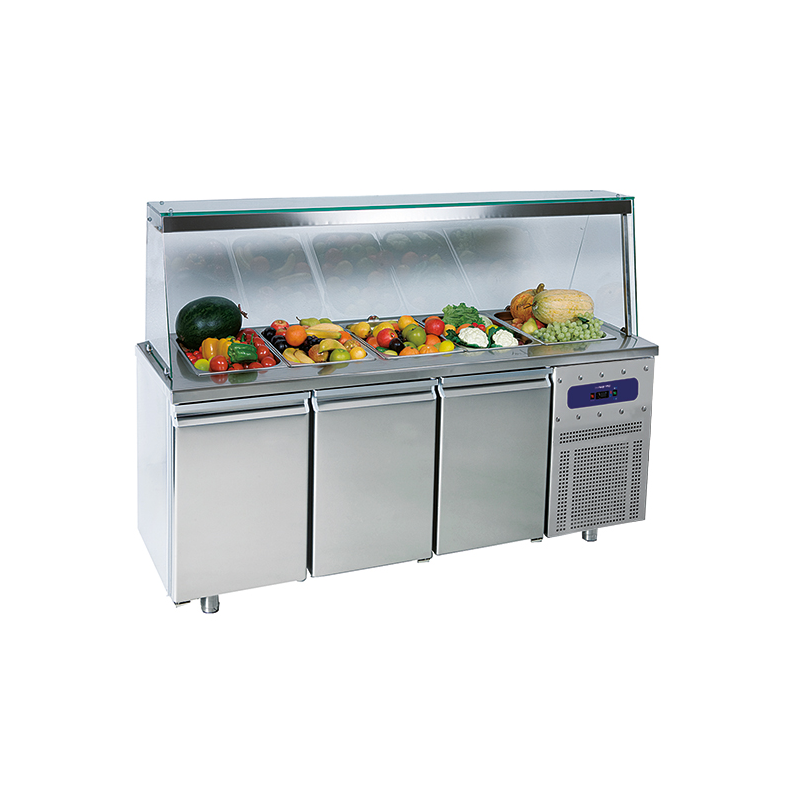 Saladette med 3 dörrar gn 1/1 och glas struktur, 5x gn 1/1 h 150 mm, -2 ° / + 8 ° c
