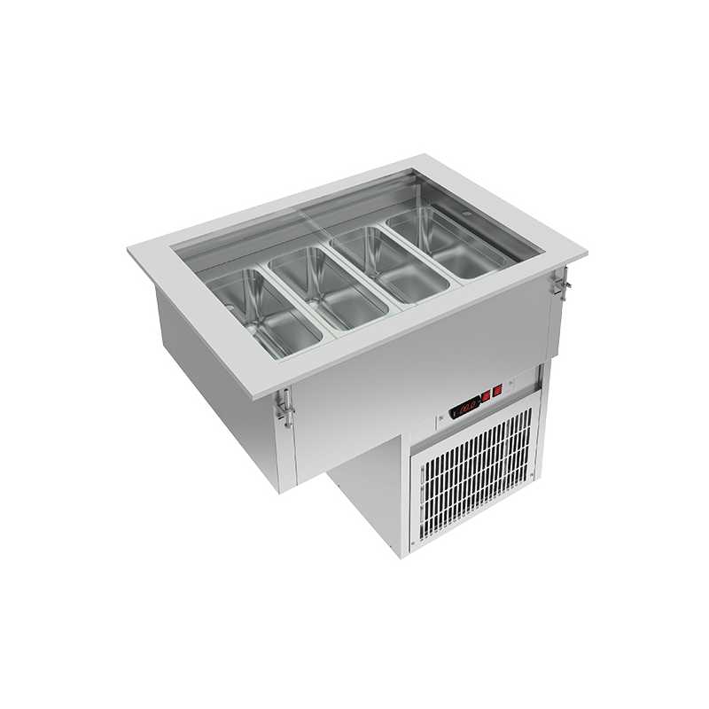 Specialdesignad för frysta produkter display, särskilt glass i behållare eller förpackade. 240 mm djup väl med hög densitet isolering. Inkluderar Stödskenor för glass behållare och transparent, skjutbara skydd täcker. Kapacitet för fyra (4) glass behållare, 360 x 165 x 180 mm storlek, som inte är inkluderade. Drifttemperatur i väl:-18 -15 º C / º c. Spänning och frekvens: 230V/1/50 Hz