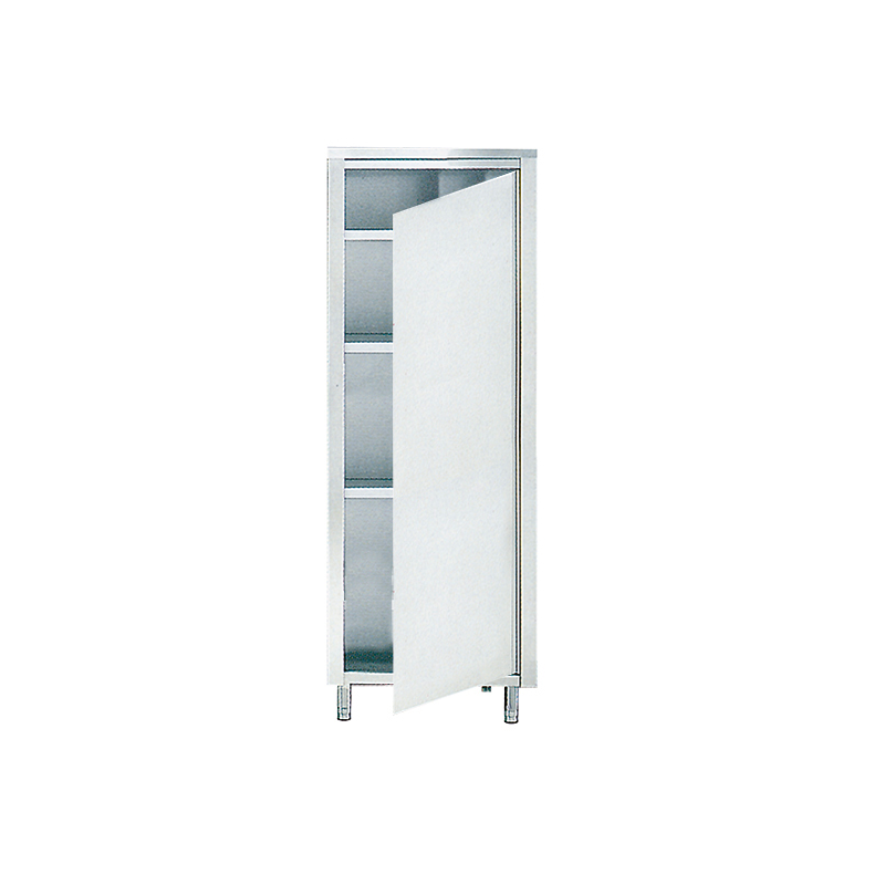 Skåp med gångjärnsdörrar med AISI 304 rostfritt stål topp 10/10 tjocklek i scotch brite finish, h 40 mm med inre förstärkning. Ram med baksidan, n ° 3 justerbar hylla, sidor, isolerade dörrar, hylla ligger på 150 mm från golvet, rostfritt stål AISI 304 s görs i scotch brite finish, supp ljög med justerbara fötter i rostfritt stål och nylon. Inga vassa kanter.