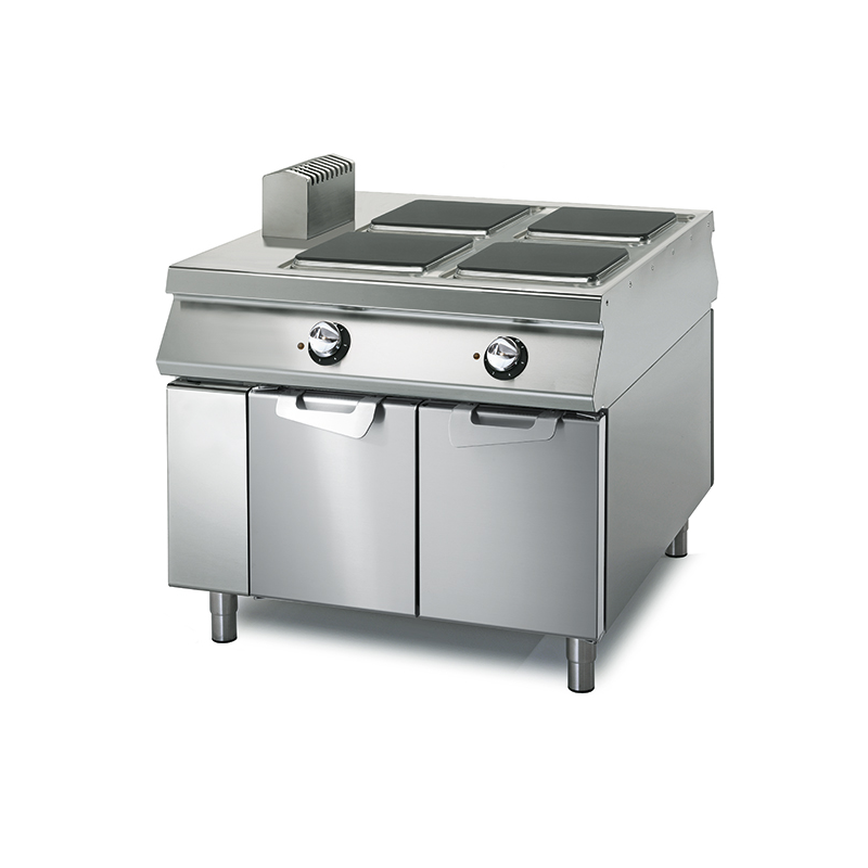 Arbetsyta i rostfritt stål AISI 304, tjocklek 20/10. Golvet översvämmade för uppsamling av vätskor. Fyrkantig gjutjärn, 300 x 300 mm värme plattor, fäst tätt till golvet med 4 kW power varje aktivering av värme problemet rapporterats av signallampa på Kontrollpanelen. Arbetstemperaturen är justerbar i 6 positioner.