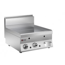 Stålplattorna värms upp av gasbrännare för att garantera att temperaturen stiger snabbt och bibehåller de förinställda värdena. Temperaturen kan justeras från 120-280 ° C. Plattorna är utrustade med stänkskydd så att hällen kan hållas helt ren och hygienisk. Arbetsytan är något lutande för att skicka såser, fett och förband i det kondensiva droppbrickan som är utformat för detta ändamål. Designad med piezoelektrisk tändning, pilotflamma, termoelement och ventiler för att säkerställa maximal säkerhet. Förkromade modeller är utrustade med termostatstyrning, en säkerhetstermostat och strömljus.