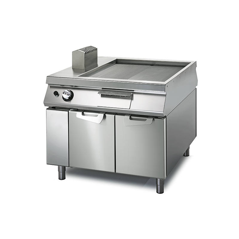 1/2 1/2 Släta Plattan Fry Top Gas, Räfflad, På Bas Med Dörrar, 2 Sida Kommandon