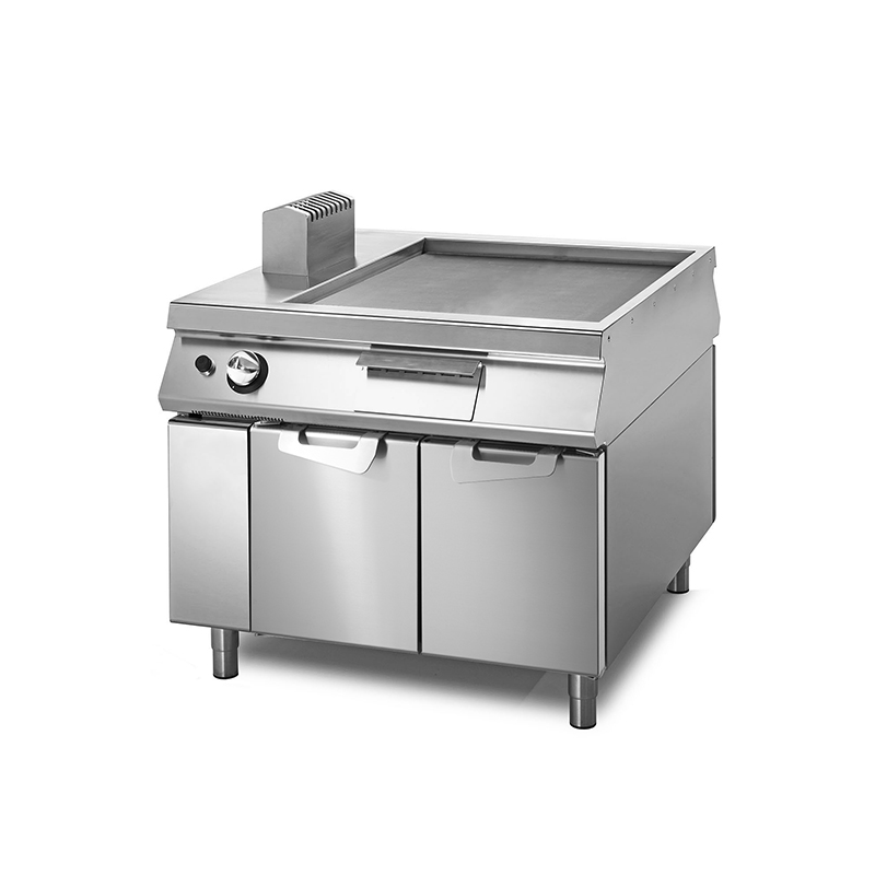 Krom Slät Stekhäll Fry Top Gas På Bas Med Dörrar, 2 Sida Kommandon